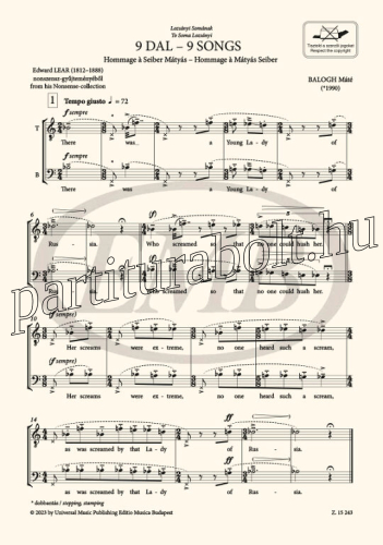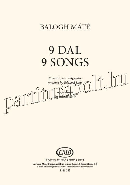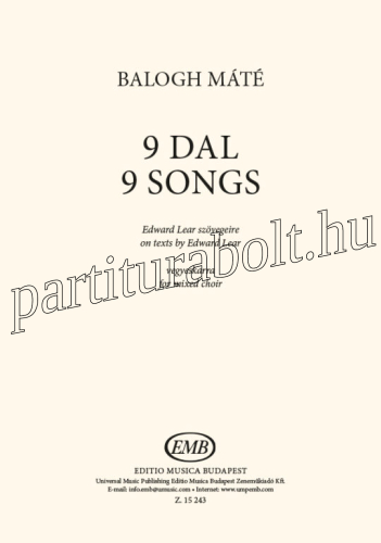 9 dal (Edward Lear szövegeire vegyeskarra) - kórus lapkotta