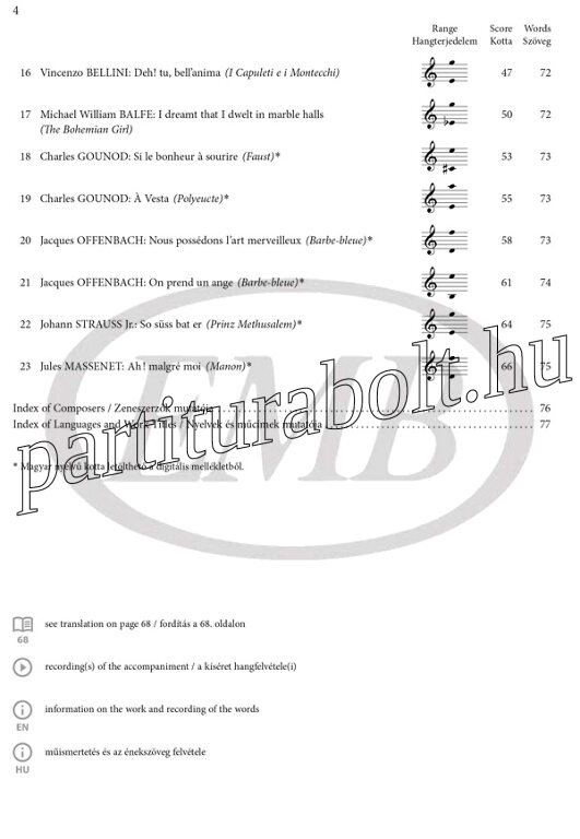- a francia és német nyelvű áriák letölthető kottája énekelhető magyar szöveggel