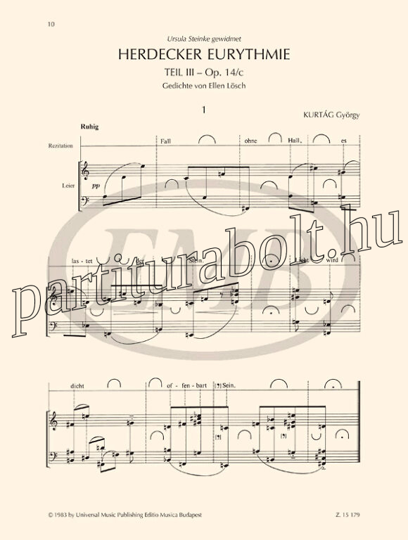 Kiadó: Universal Music Publishing Editio Musica Budapest (UMPEMB)