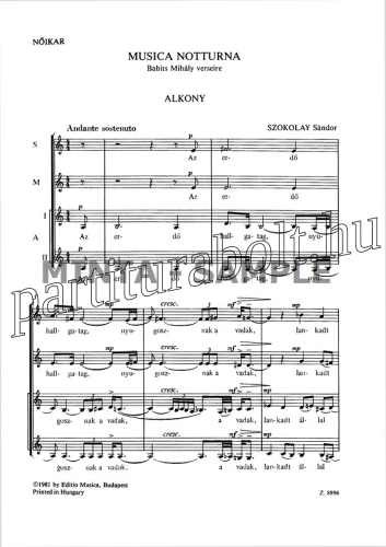 Musica notturna - női karra (kórus lapkotta)