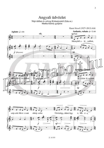 - Karai József: Angyali üdvözlet ( Népi dallam és szöveg Kiskanizsáról Mathia K. gyűjtése)