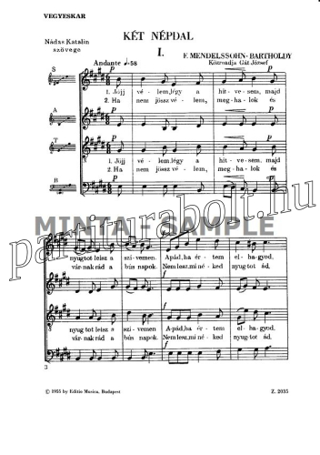 Kórus lapkotta - Vegyeskar a cappella (Z. 2035)