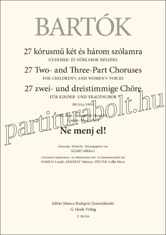 27 kórusmű két és három szólamra gyermek- és nőikarok részére, III. füzet 1. szám (BB 111a, 1935)