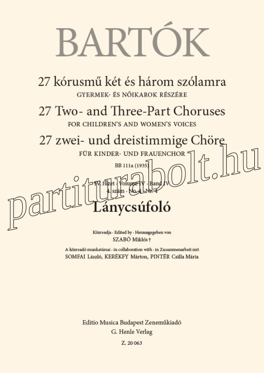 (27 kórusmű két és három szólamra gyermek- és nőikarok részére, IV. füzet 4. szám (BB 111a, 1935)