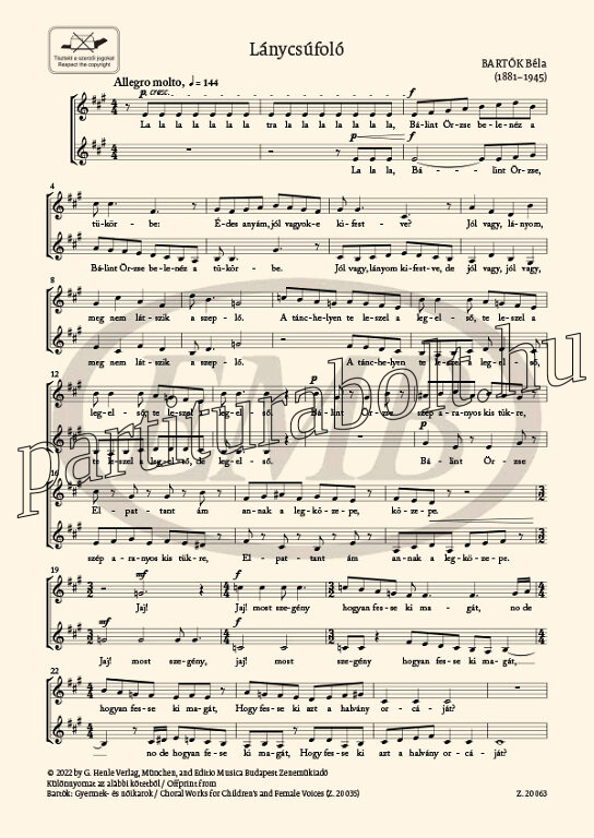 Lánycsúfoló - egyneműkarra (kórus lapkotta)