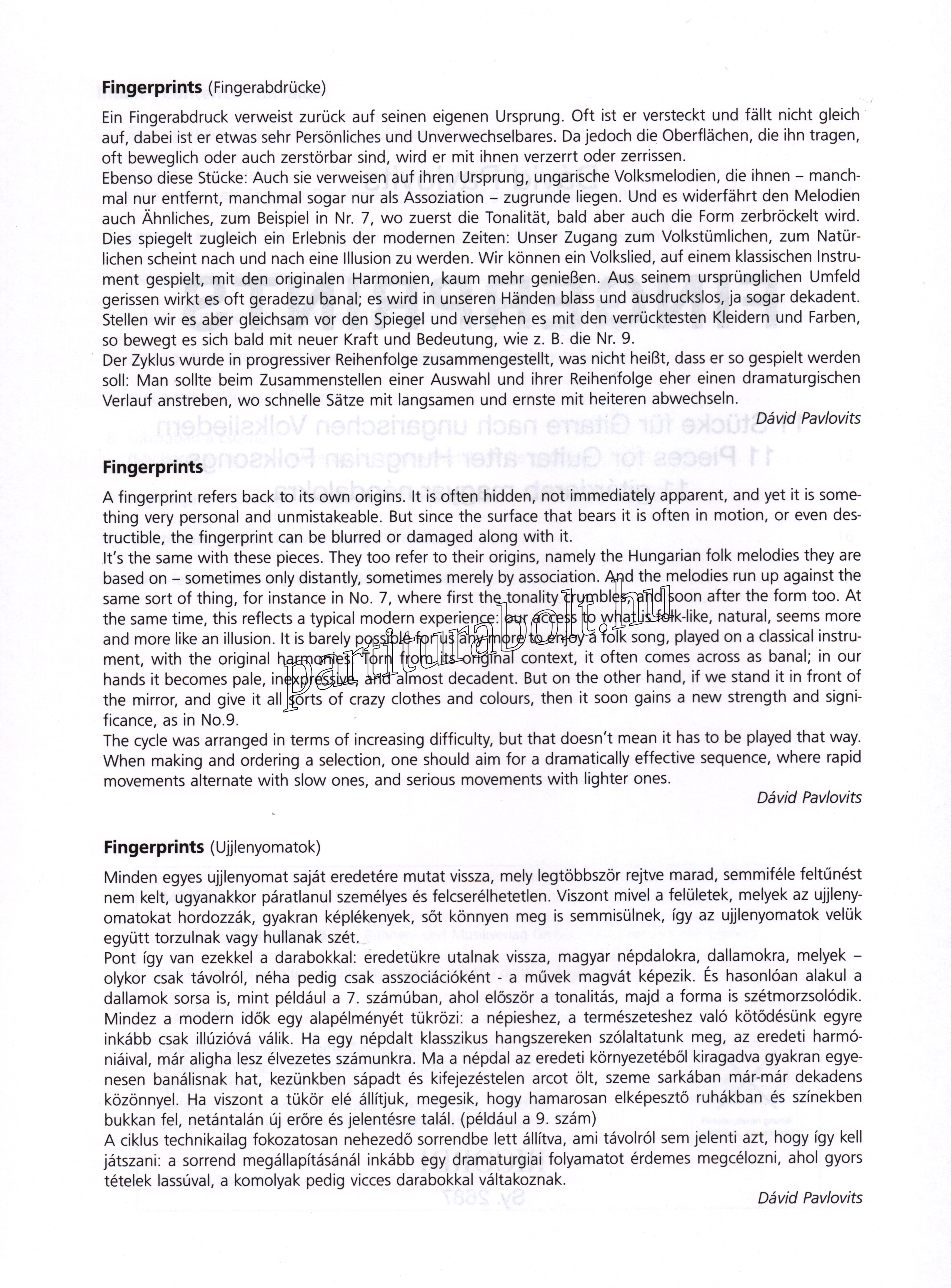 Fingerprints - Ujjlenyomatok (11 gitárdarab magyar népdalokra)
