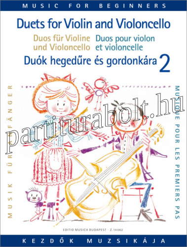 A nagy sikerű Kezdők muzsikája sorozat Duók hegedűre és gordonkára 1. kötetének (Z. 8733) folytatása a kiváló szerzőpáros, Pejtsik Árpád és Vigh Lajos közreadásában. A kiadványban található 15 - köztük többtételes - darab mintegy felerészben barokk, felerészben bécsi klasszikus mesterek kompozíciója. Ezt a kötetet négy-öt évi komoly hangszertanulmányok elvégzése után ajánljuk.