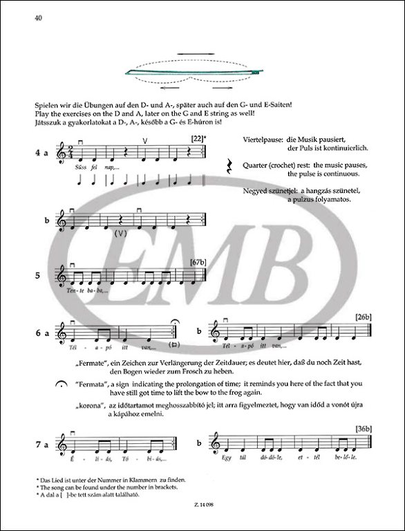 "Örömmel látok egy olyan hegedűiskolát, amely testünk és végtagjaink, agyunk és lelkünk előkészítésének fontosságát hangsúlyozza, függetlenül a hangszertől. Mindig is azt mondtam, hogy ideális esetben az előkészítés olyan teljes körű, alapos és élvezetes, hogy amikor a gyermek először veszi kezébe a hegedűt és a vonót, tiszta hang szólal meg". Yehudi Menuhin