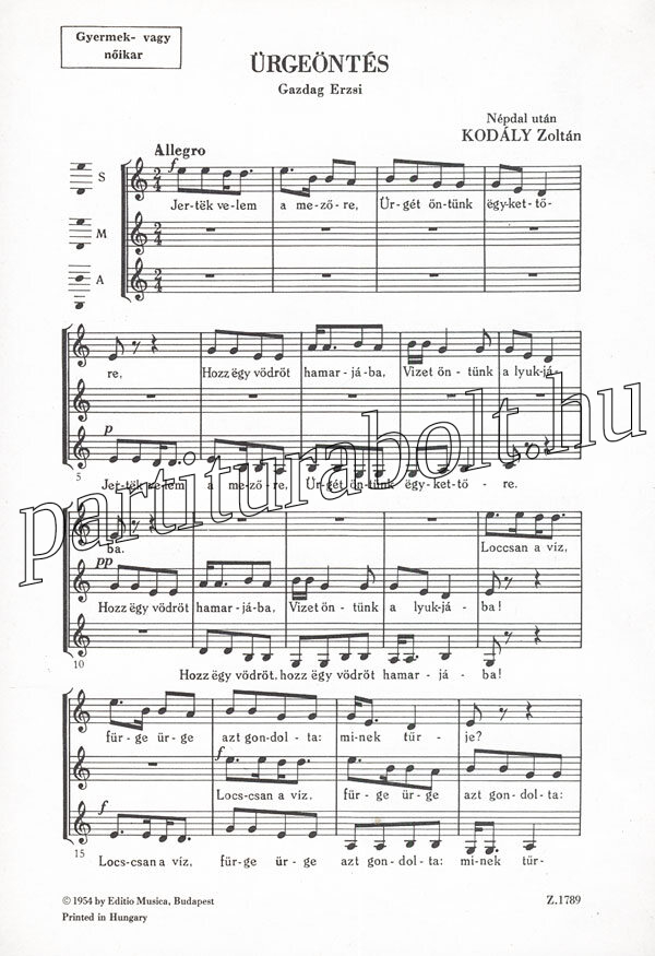 Ürgeöntés (gyermek- vagy nőikarra) - kórus lapkotta