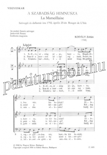 A szabadság himnusza (La Marseillaise) - kórus lapkotta